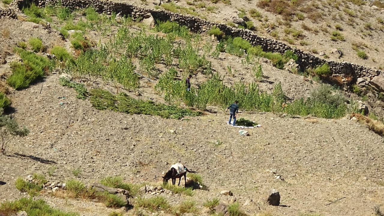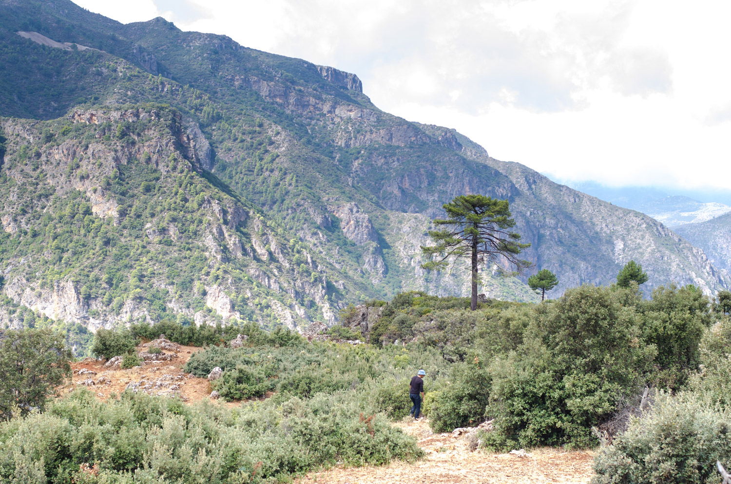Hier in Talassemtane, dem Treffpunkt der Gîte-Betreiber, erscheint das Ferienhaus-Areal wie eine Insel zwischen den Hügeln, die sich wie Wellen durch die Landschaft winden. Im betriebseigenen Obstgarten tragen die Granatapfelbäume erste Früchte. Doch direkt nebenan erstrecken sich drei Morgen Ackerland, auf denen ausschließlich Cannabis kultiviert wird. Am Fuße des Abhangs lässt die rötlichbraune Farbe der Erde erkennen, dass hier vor kurzem ein Teil des Bergwalds gerodet wurde, der sich noch an den steileren Klippenstellen hält. Bislang sprießen auf diesem Feldabschnitt keine Cannabis-Pflanzen. Doch der Grund ist bereits bestellt.